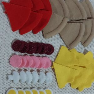Pizza de juguete en tela, hecha a mano con colores vibrantes y piezas desmontables. Ideal para juego simbólico y creativo.